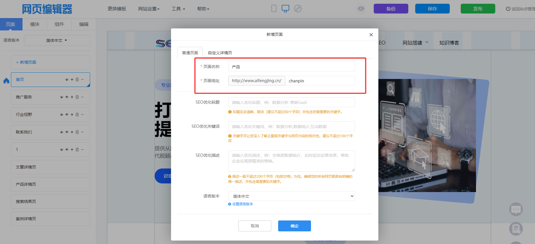 使用营销枢纽系统搭建网站自动识别名称后缀,同样支持修改,对搜索引擎抓取收录更友好。