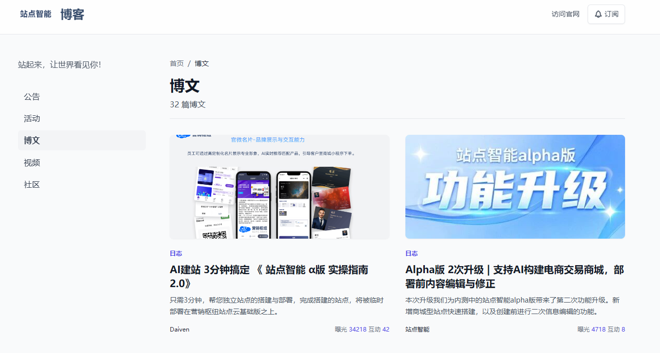 官网、企业博客是 AI 抓取的核心阵地,需保持定期更新。官网要保证结构清晰、加载速度快,博客可围绕行业痛点、解决方案、干货技巧等主题持续输出优质内容。现在你的网站也可以直接生成博客,站点以多种形态对外呈现。立即申请体验:申请免费试用-LTD