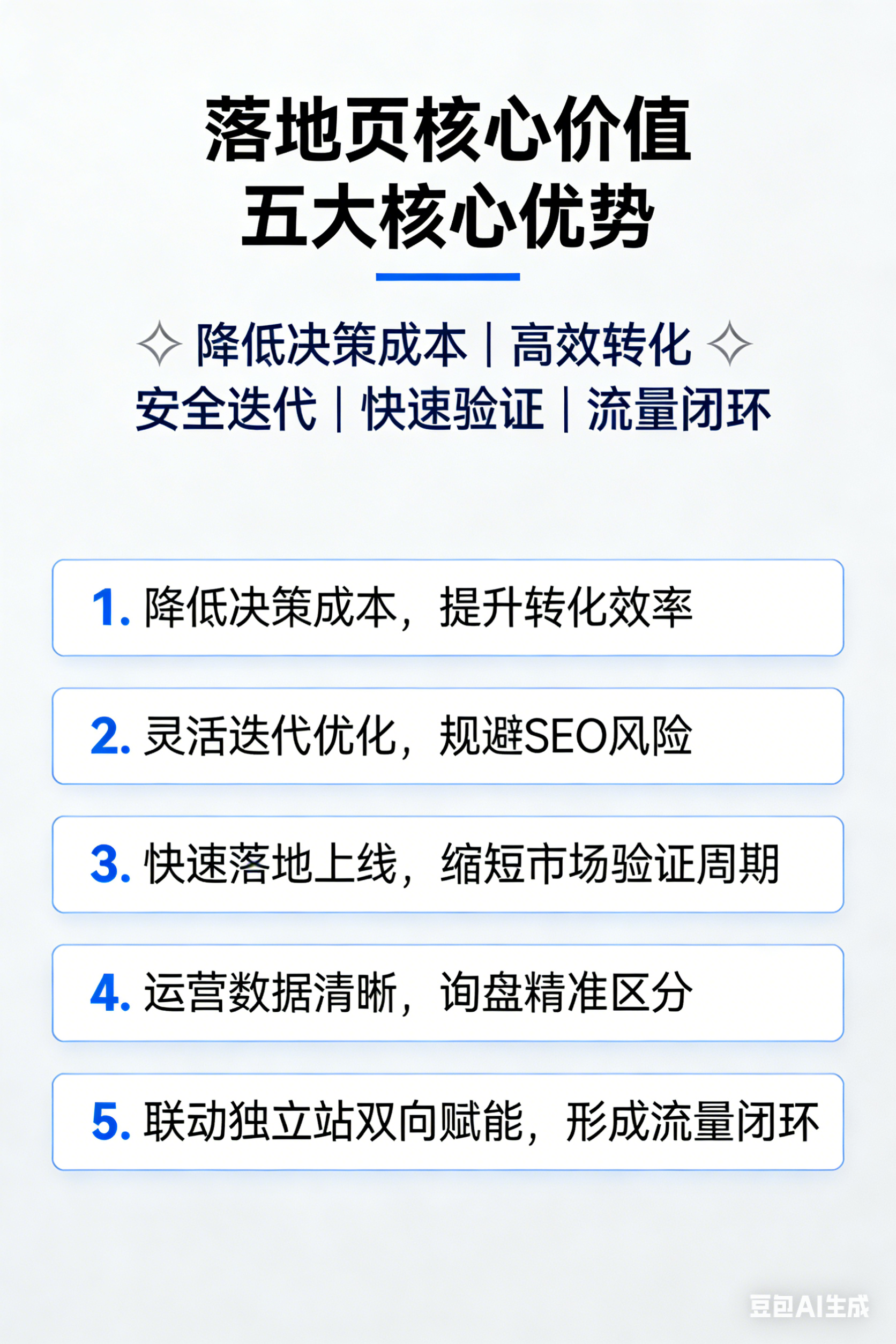 对于外贸企业而言,落地页并非 “可选项”,而是提升投放 ROI 的 “刚需项”,其核心优势集中体现在以下 5 点: